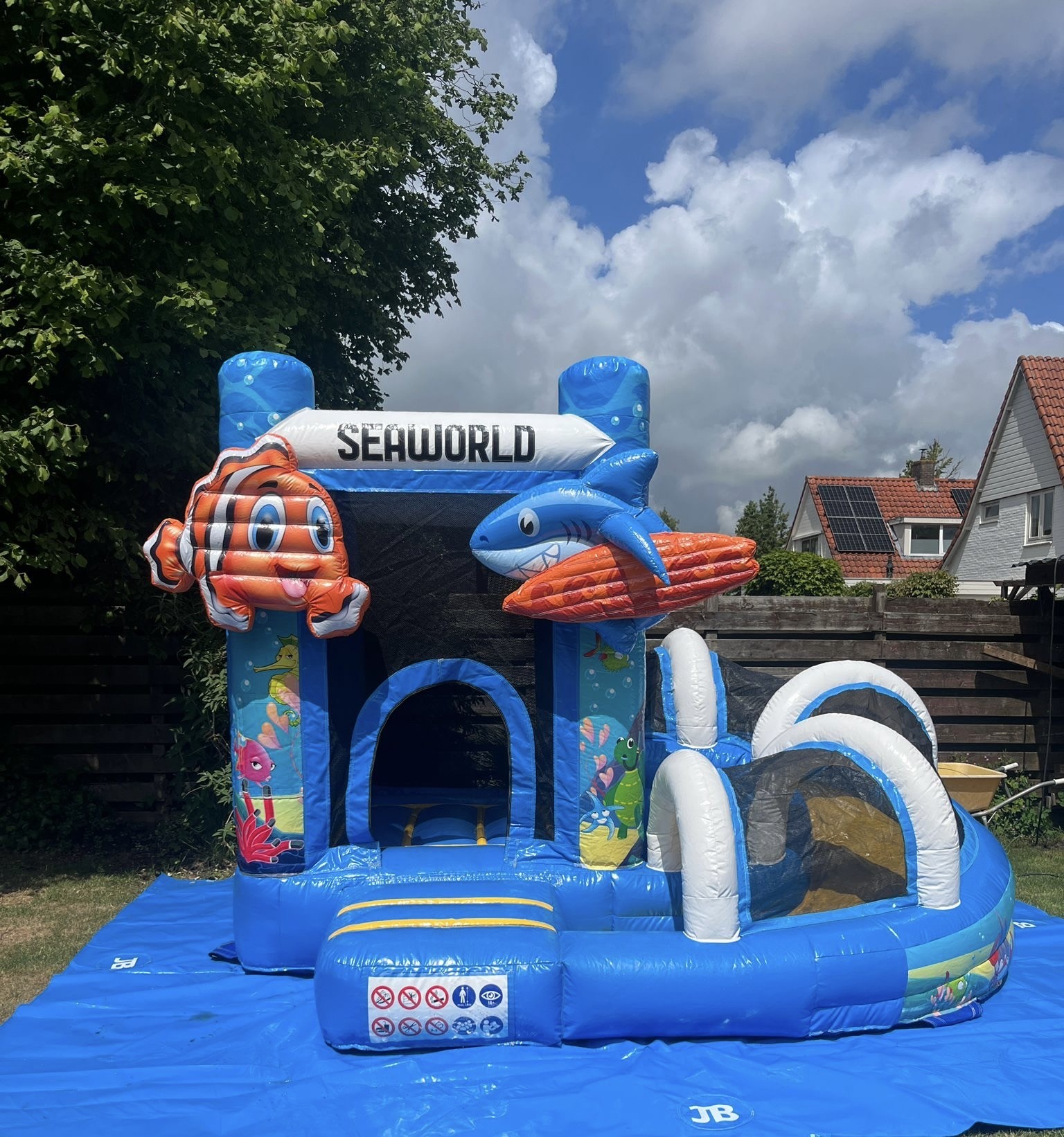 Op zoek naar fun voor de kids? Dit vrolijke en compacte springkussen met Seaworld thema is ideaal voor de kleinere kinderen. Dankzij het springvlak, gecombineerd met de originele ronde glijbaan, zullen kinderen met veel plezier springen en glijden!🤩